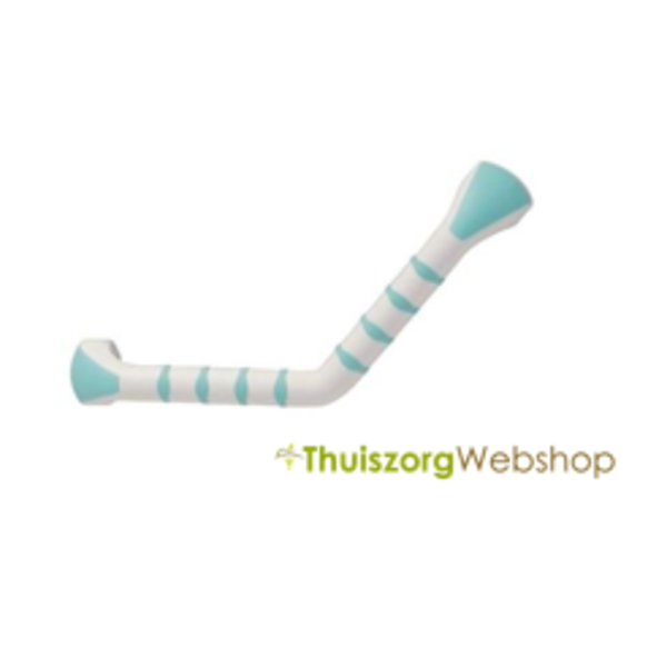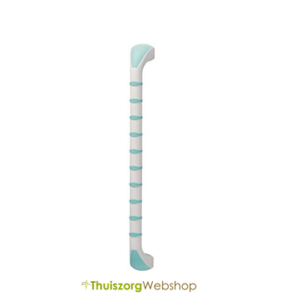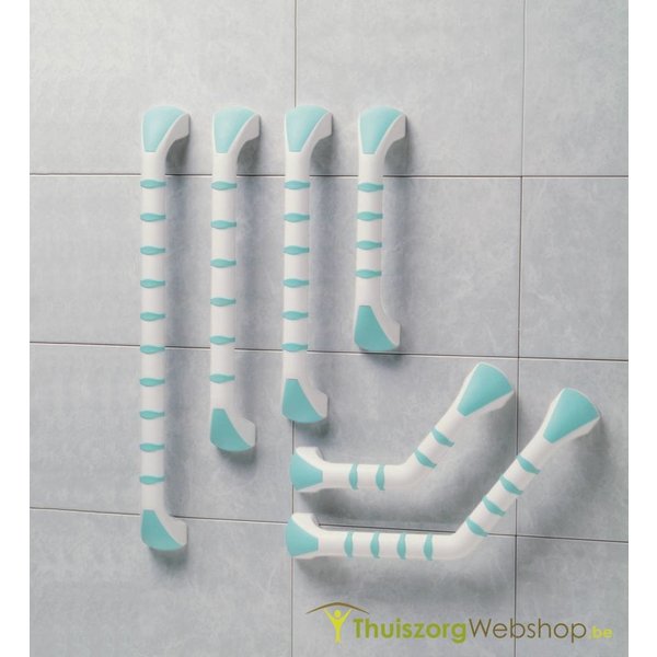 Beau support design en version vert menthe ou blanc, avec nervures antidérapantes. Support très robuste avec un noyau en aluminium. Même avec les mains mouillées, la prise en main est parfaite grâce à la nervure spéciale. Les versions courbes sont également très utiles dans les toilettes.