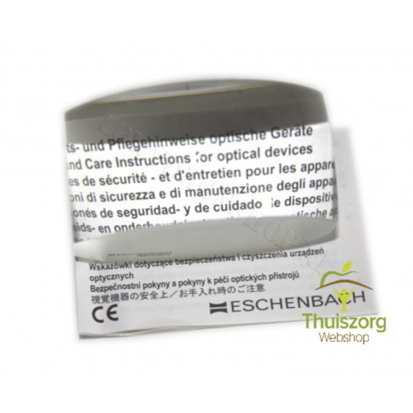 Dimensions 65 x 36 x 46 mm, surface asphérique. Facteur d'agrandissement: 1,8 x, avec bord mat.