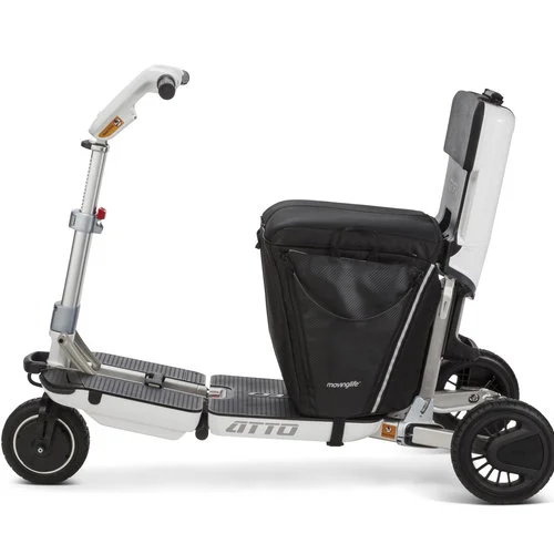 De ATTO Scooter is een scootmobiel die gemakkelijk te plooien is. Door zijn korte draaicirkel kunt u zich zorgeloos verplaatsen in kleine ruimtes. Ideaal voor alledaags gebruik of voor een city trip. De afstand tussen de ATTO en de grond is hoger dan bij een gemiddelde scootmobiel. Zo schuurt u niet over de grond op een oneffen terrein. De scooter past in elke wagen en is zelfs in het vliegtuig te vervoeren dankzij zijn split functie. Met één druk op de knop splits u de ATTO in twee delen.
