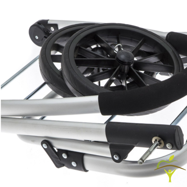 Pour voyager avec un double pli en 1 clic, même les roues peuvent être encliquetées dans un petit paquet compact.