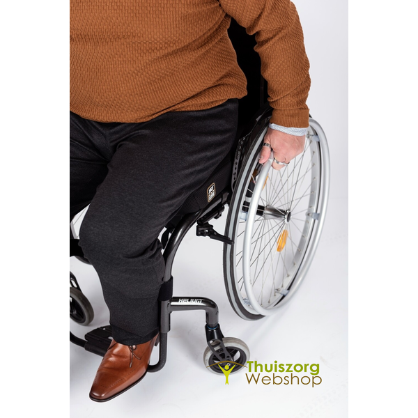 Le pantalon est idéal pour les personnes qui peuvent encore parcourir de courtes distances, mais qui ont toujours besoin d'un chariot. En raison du tissu et de la ceinture très élastiques, il peut être mis et enlevé très rapidement et facilement.